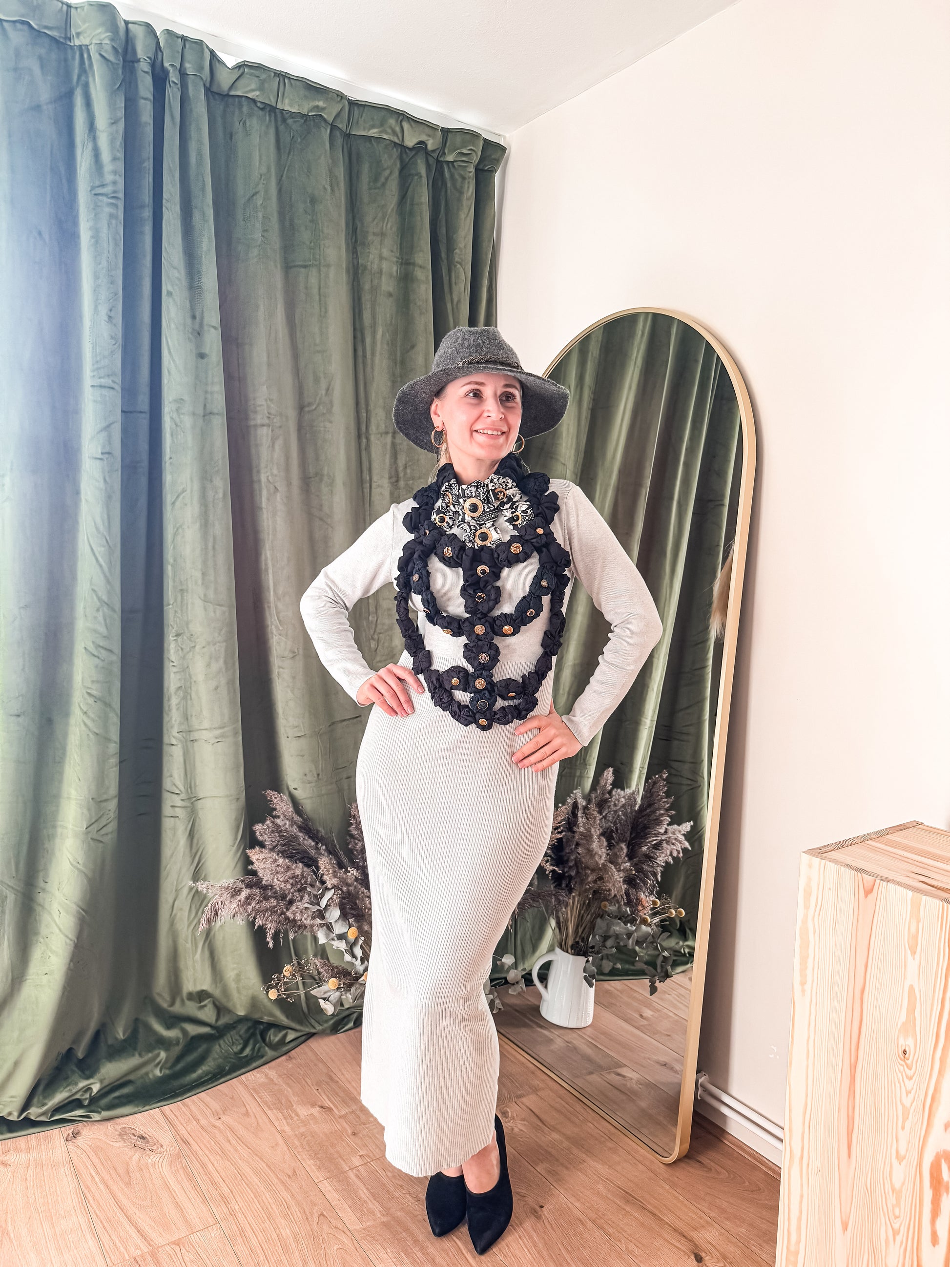GREY HAND DECORATED WOOL HAT by LALcouture
