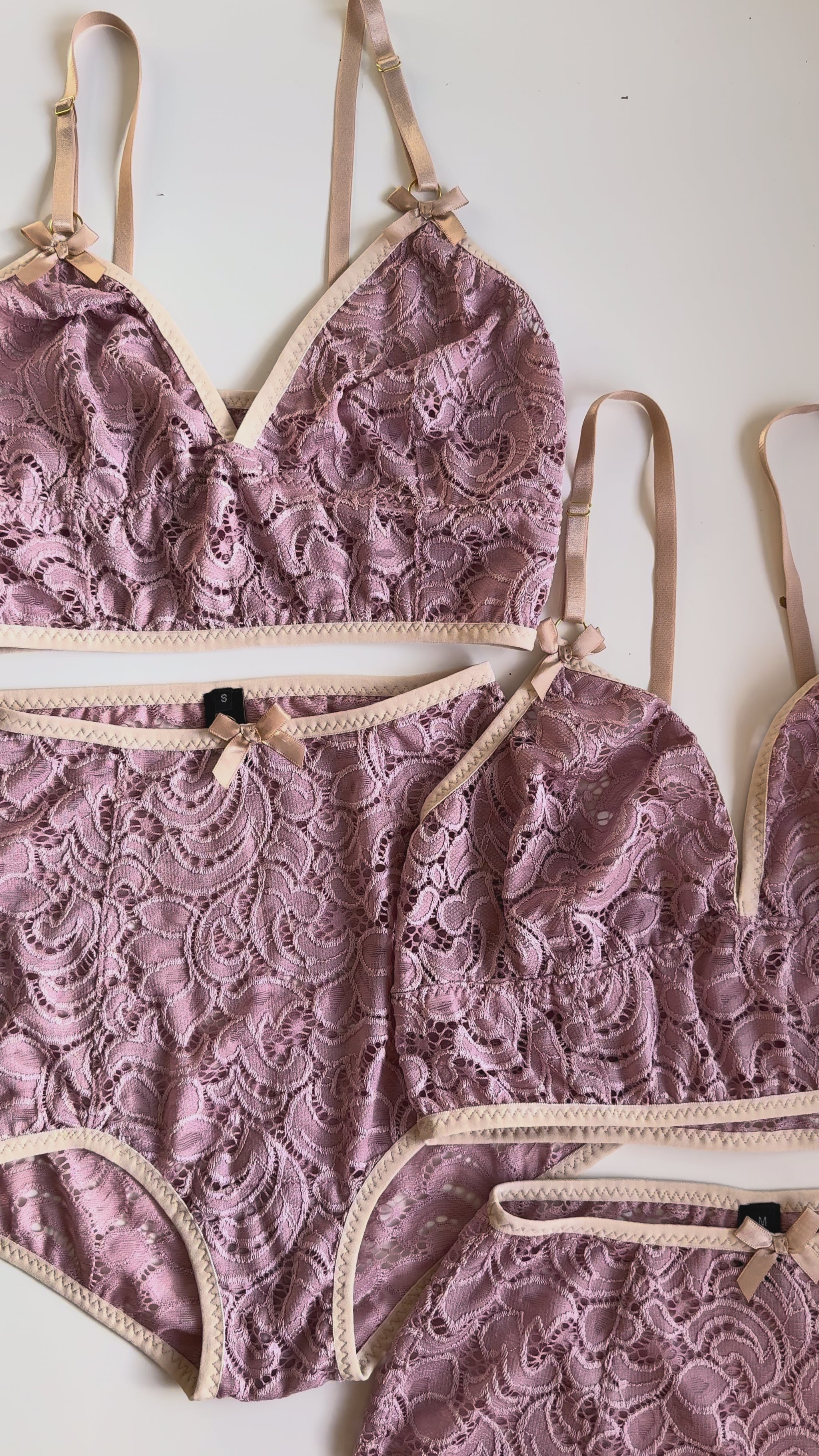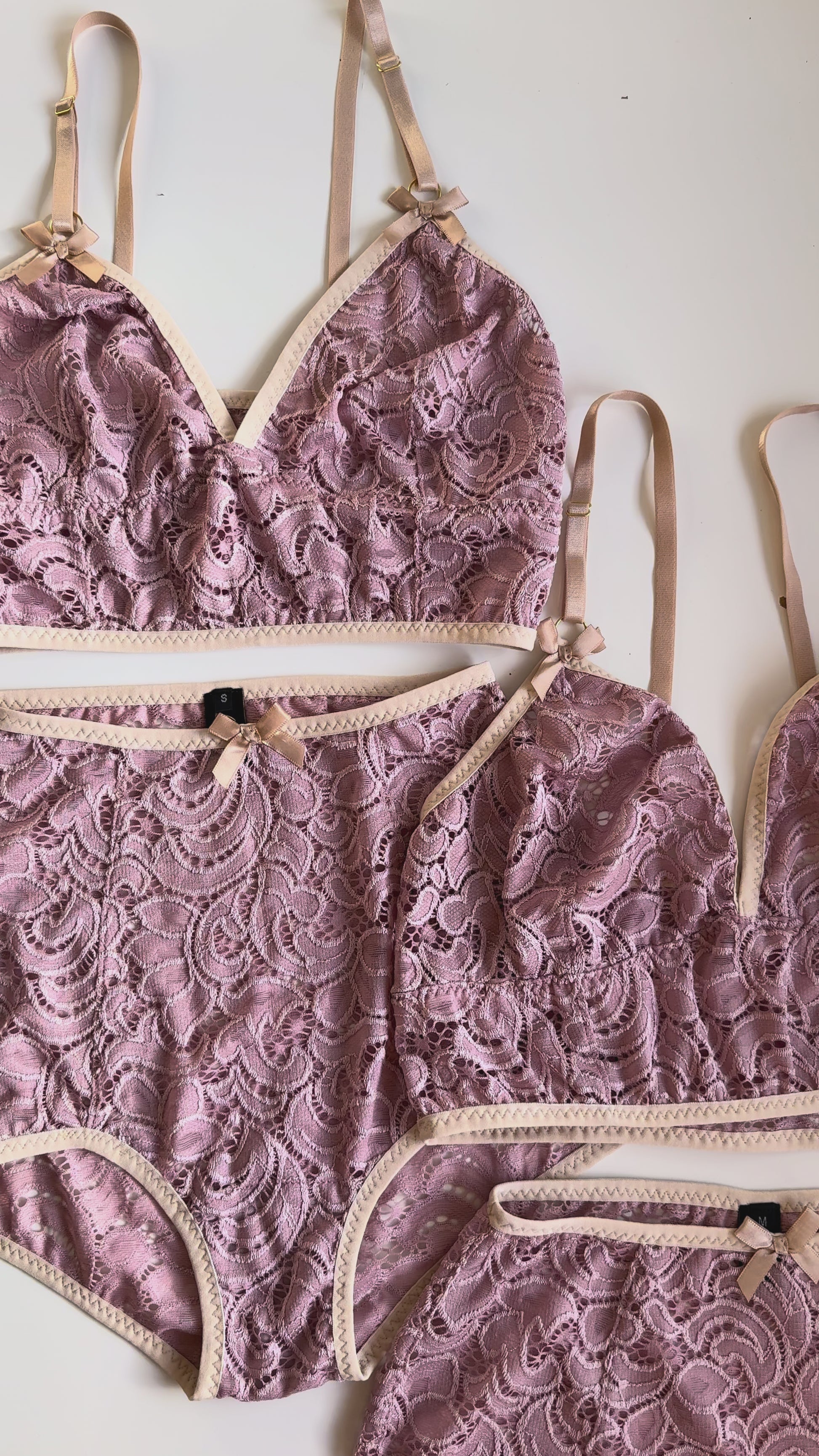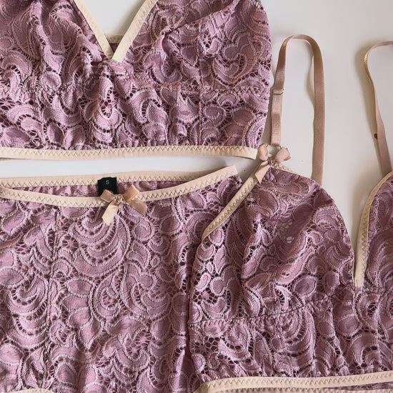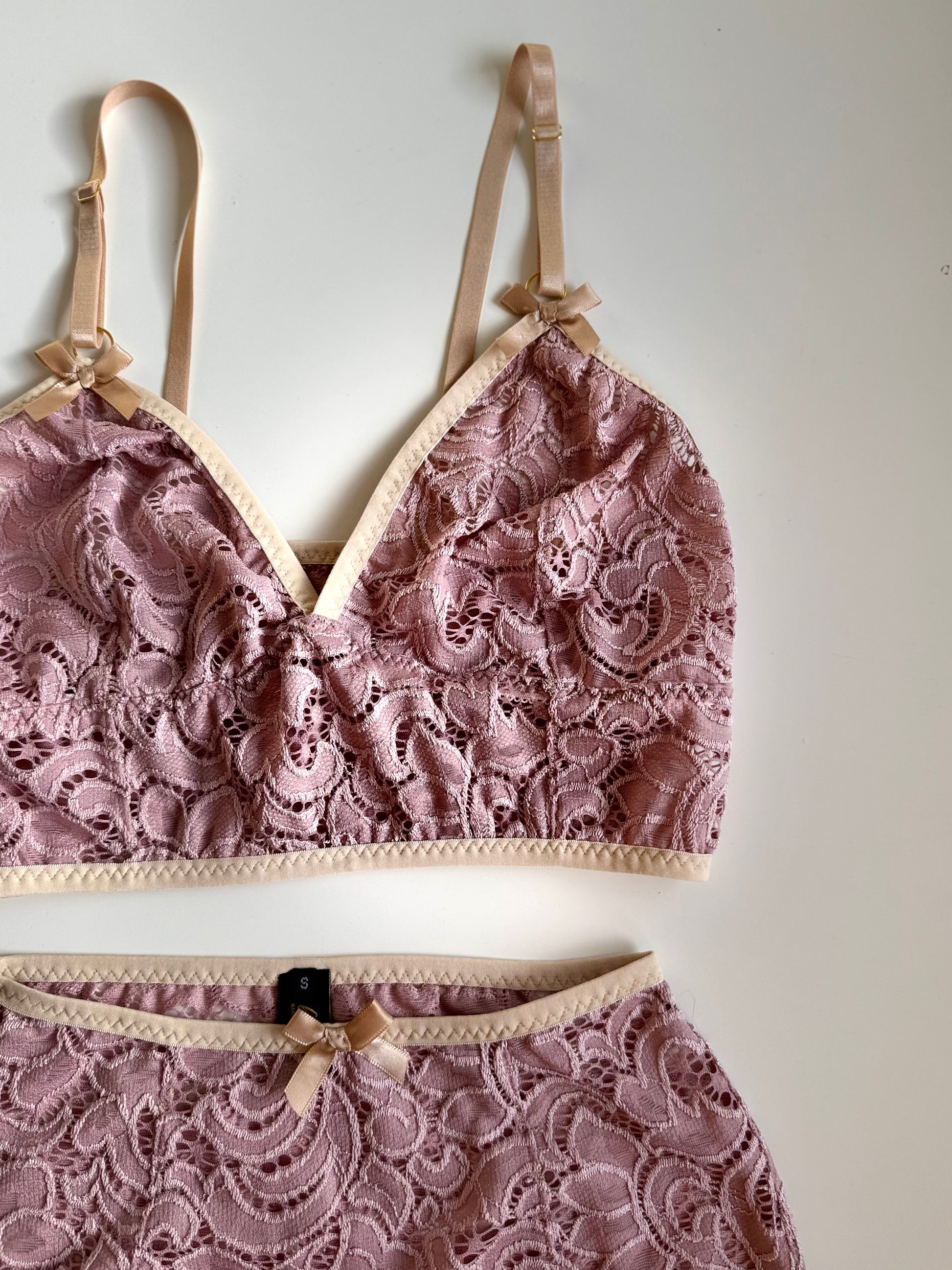 ROCHELLE DUSKY ROSE LACE lingerie set / S, M sizes